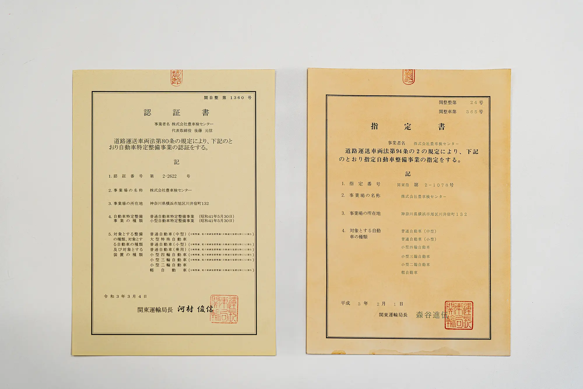 国の基準をクリアした設備と技術で、安心の車検をお届けします。自社で検査ラインを持つため、陸運局に行く必要がなく、スピーディーな対応が可能です。